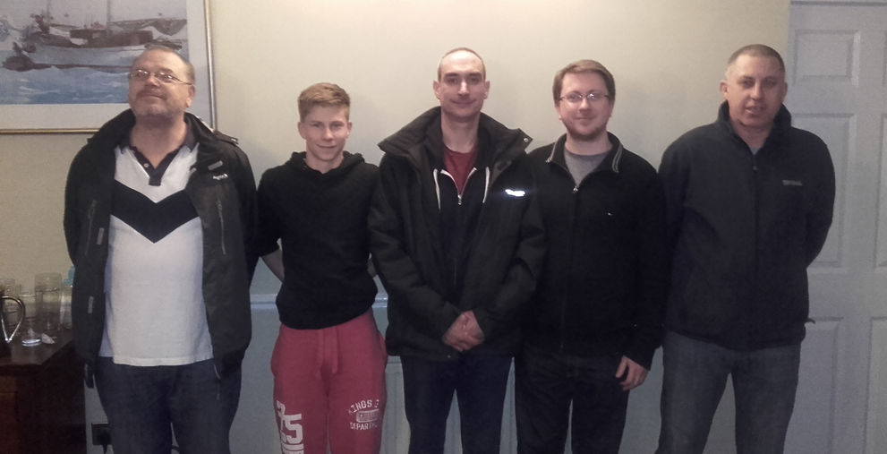 The victorious Cork B team of Dave Smith, Tom McGrath, Simon Lawrence (Team Captain), Gerard Condon and Len Hackett. Mark Watkins, Desmond Doran and and Alan White also played for Cork B in earlier rounds.